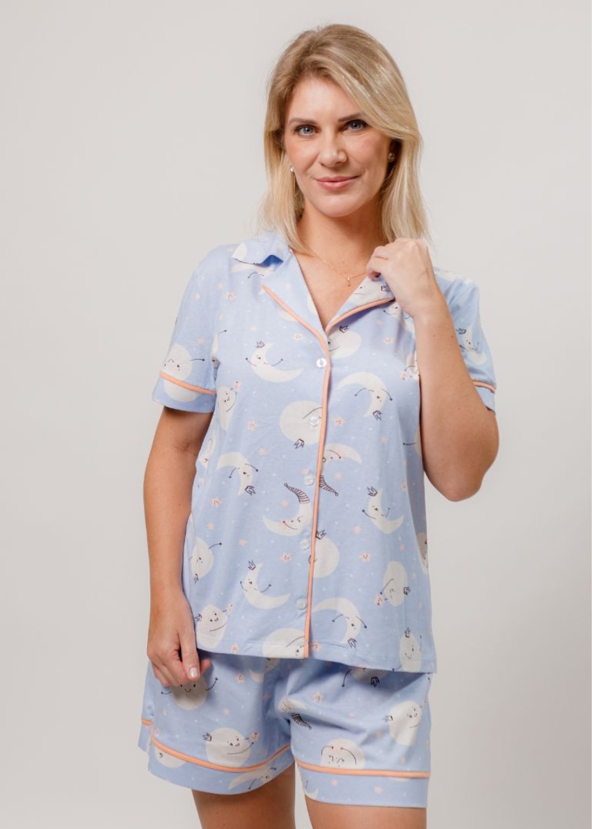 -1 Pijama americano curto. Estampa: Lua Rosa